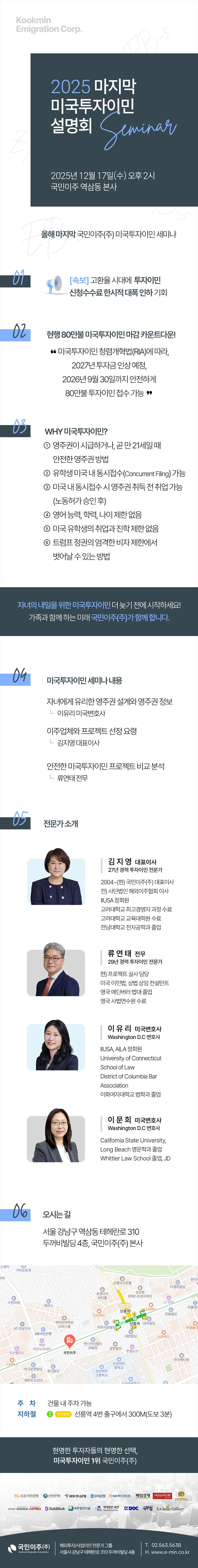 국민이주(주) 서울 강남구 테헤란로 310 두꺼비빌딩 4층  ㅣ  T. 02-563-5638  ㅣ  F.02-555-5805 ㅣ  E.kmc@e-min.co.kr